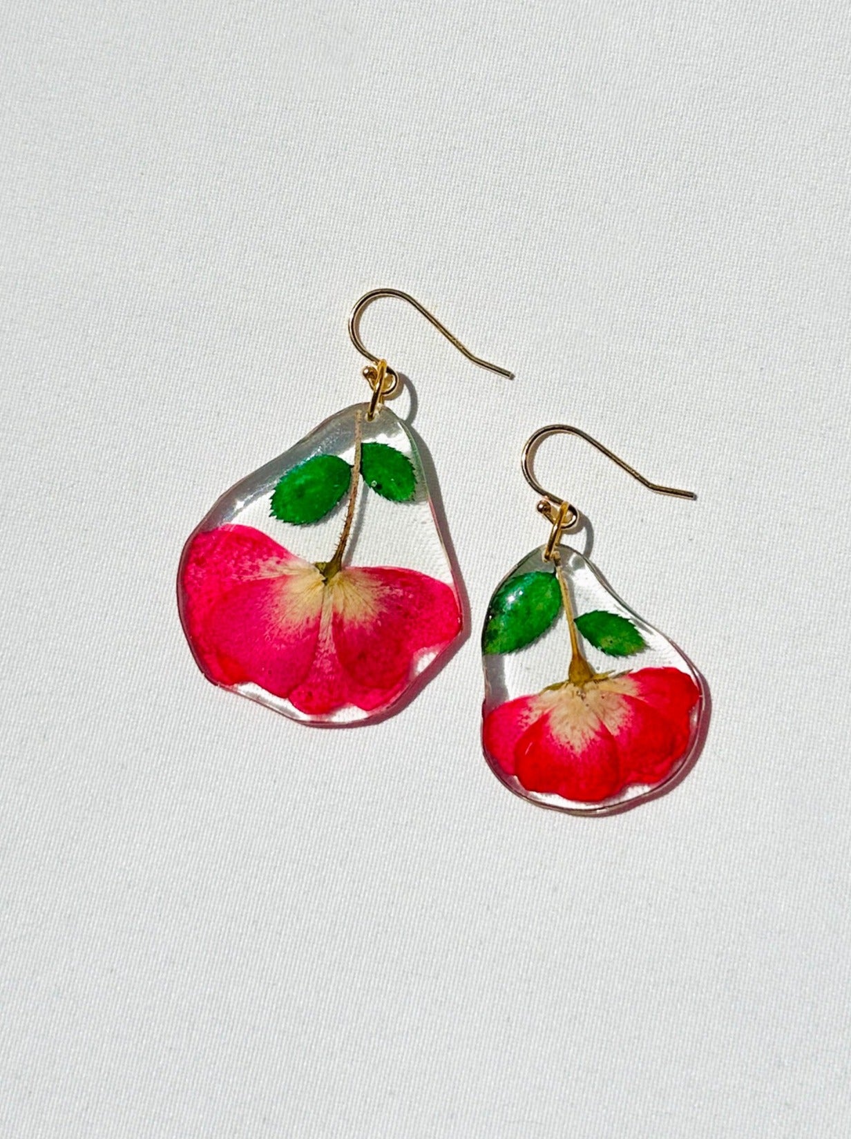 Please note that our earrings are made from real flowers. There will be slight variances in size, shape, and color from the flowers shown online. Flowers may change in color with exposure to sunlight and with the times. It's nature's way of showing you love!