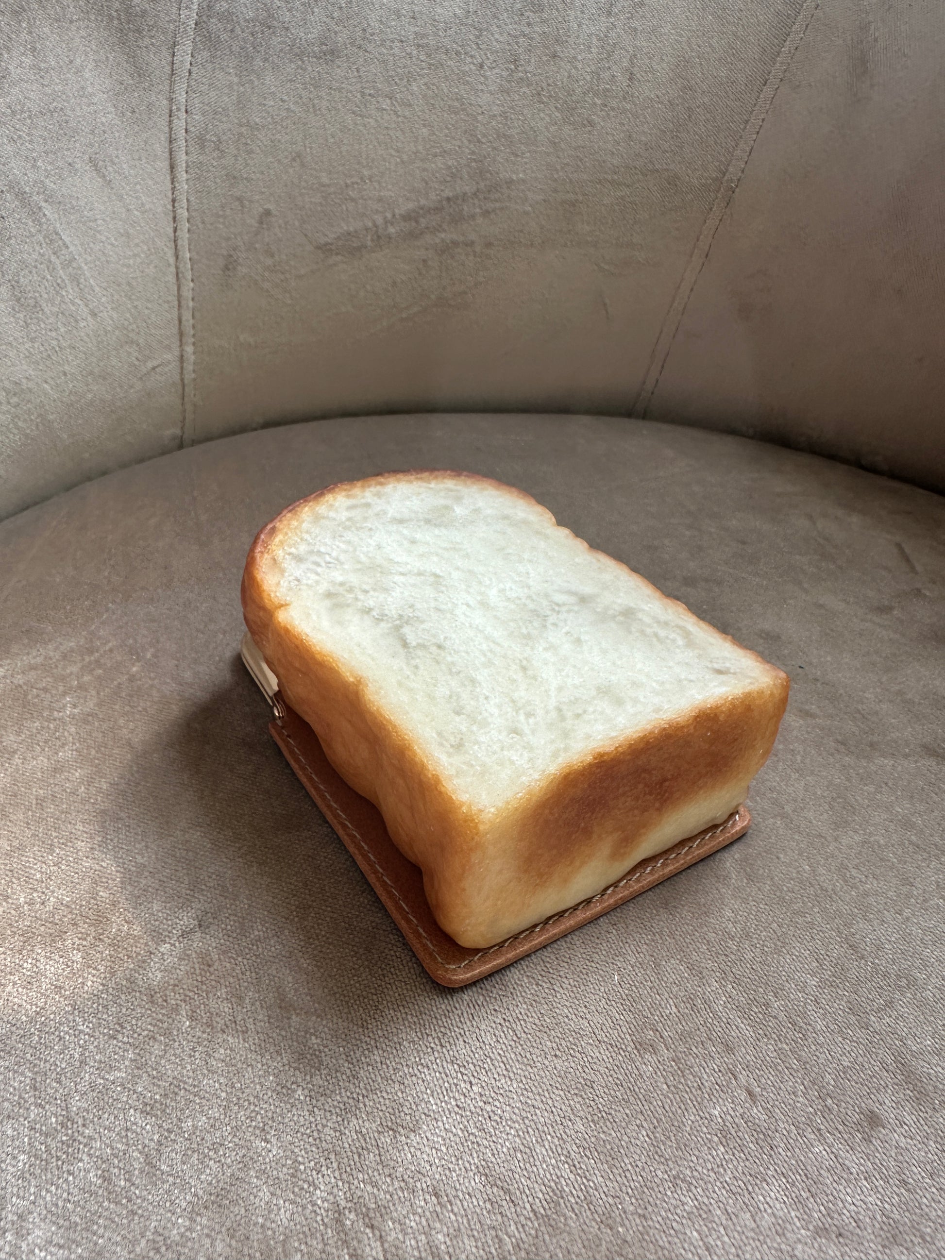 Crafted from real, surplus bread that would otherwise be discarded-- baked, hollowed, and reimagined into a delightful purse. Coated in an anti-bacterial and anti-fungal, eco-friendly resin. Leather kisslock backing + bread is hollowed to store all the essentials— phone, keys, cards, lipstick....