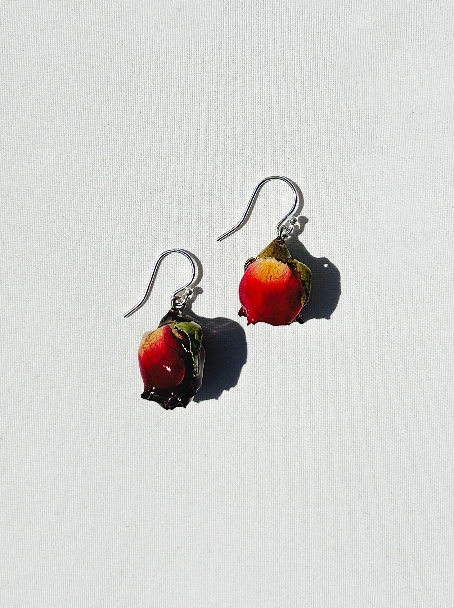 Please note that our earrings are made from real flowers. There will be slight variances in size, shape, and color from the flowers shown online. Flowers may develop in color with time and sunlight exposure. It's nature's way of showing you love!