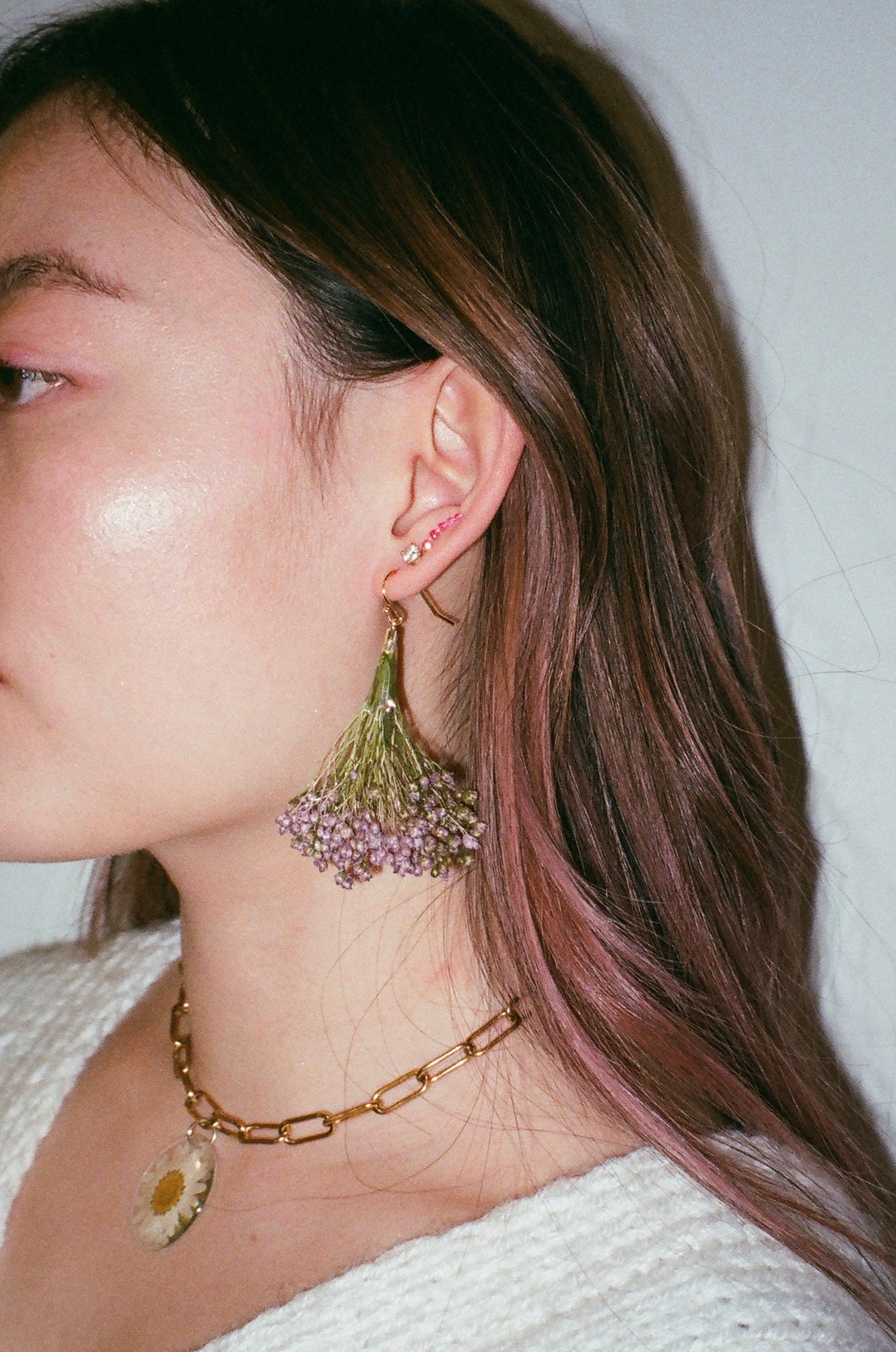 Please note that our earrings are made from real flowers. There will be slight variances in size, shape, and color from the flowers shown online. Flowers may develop in color with time and sunlight exposure. It's nature's way of showing you love!